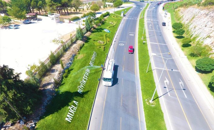 Park, refüj, kavşak gibi sorumluluk alanlardaki yerlerde peyzaj düzenlemelerini gerçekleştiren Muğla Büyükşehir Belediyesi, atıl alanları geriye kazandırırken, toprak altı sulama sistemi, çim yerine yer örtücü bitki kullanarak su tasarrufunda bulunuyor.