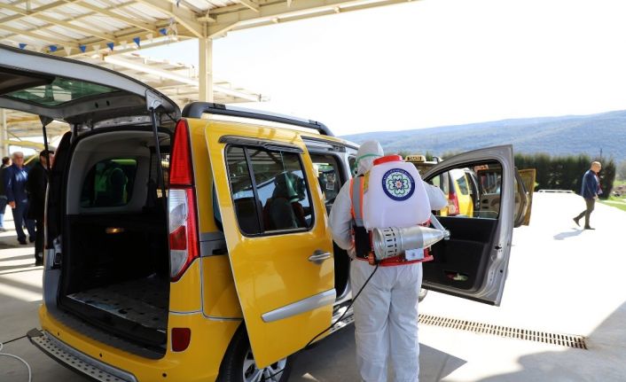 Muğla Büyükşehir Belediyesi toplu ulaşım araçlarından sonra 13 ilçede bulunan taksileri de dezenfekte etti.