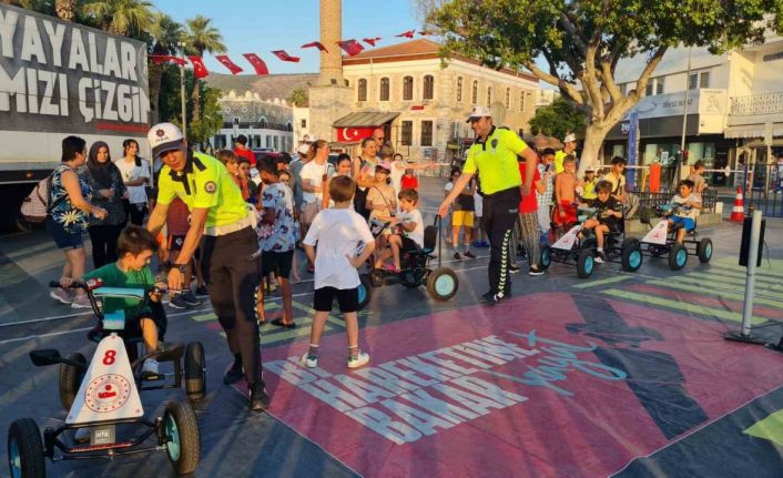 Öğrencilerde trafik farkındalığı oluşturmak amacıyla Türkiye’yi dolaşan Emniyet Genel Müdürlüğü Trafik Başkanlığına ait Mobil Trafik Eğitim Tırı 2 günlüğüne Bodrum’a geldi. Bodrum Belediye Meydanı’na park edilen tırda ilçedeki 7-11 yaş arası çocuklara önce teorik eğitim verilip daha sonra puzzle hediye edildi. Ardından meydanda oluşturulan trafik eğitim sahasında araçlar ile pratik eğitimler verildi. Çocuklar eğitim alırken aileleri de çocuklarını ilgiyle takip etti. Bugün de meydanda trafik eğitimleri devam edecek.
