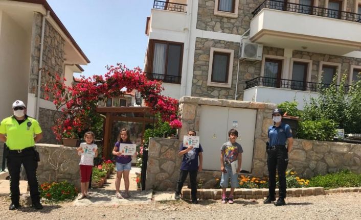 Datça polisi, miniklere 100 adet boyama kitabı dağıtarak, onların evde daha rahat vakit geçirmelerini sağlamaya yönelik bir adım atmış oldu.