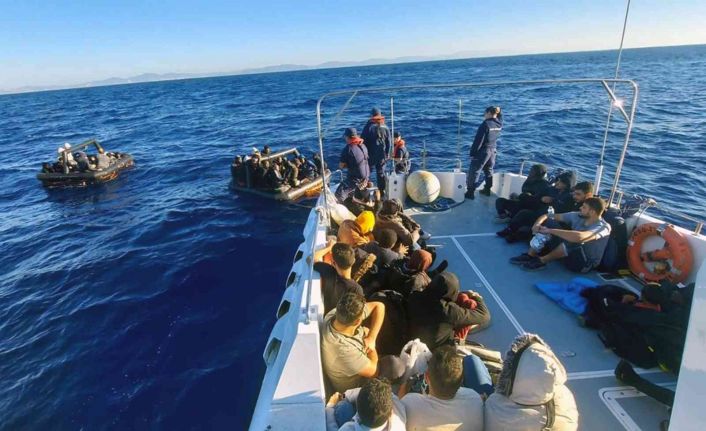 Muğla’nın Datça ilçesinde Yunanistan güvenlik unsurları tarafından Türk karasularına geri itilen 64 düzensiz göçmen kurtarıldı.