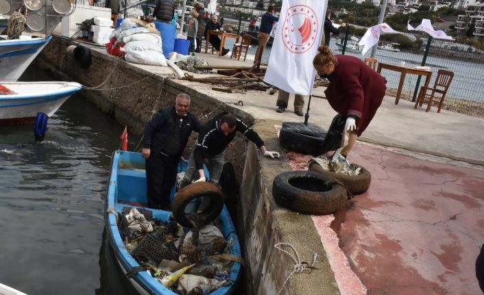 Muğla’nın Bodrum ilçesinden yapılan deniz dibi temizliğinde tonlarca çöp çıktı.