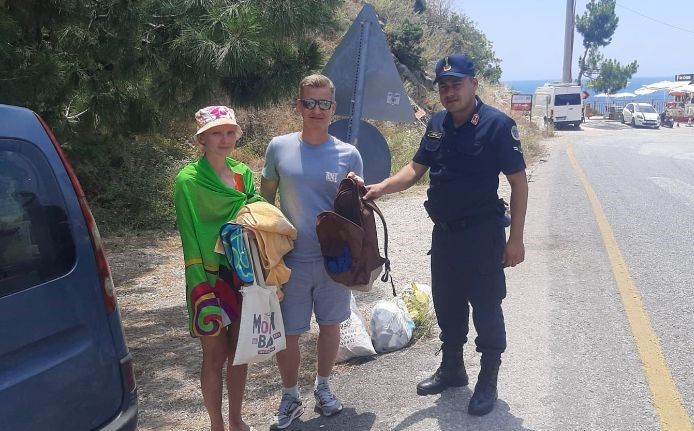 Edinilen bilgiye göre, Muğla İl Jandarma Komutanlığı ekipleri tarafından Fethiye Ölüdeniz Mahallesi Kumburnu ve Belcekız plajlarında denize giren yeril ve yabancı turistlerin şezlonglarda bıraktıkları özel eşyalarının çalınması olaylarının yaşanmasının ardından Fethiye İlçe Jandarma Komutanlığı JASAT Timleri tarafından sahil şeridinde önleyici tedbirler alındı. Alınan tedbirler çerçevesinde icra edilen önleyici kolluk devriyesi esnasında Kumburnu sahilinde boş olan bir şezlongtan kahverengi bir kadın çantasını, sarı tişörtlü bir erkek şahsın telaşlı bir şekilde alarak sahil şeridinden uzaklaştığı tespit edildi. JASAT personeli tarafından şahıs takip edilmesi üzerine çantayı ormanlık alana atarak kaçmaya çalışsa da, şüpheli yakalanarak gözaltına alındı. M.E. isimli şahıs (16 adet çeşitli suçlardan suç kaydı bulunan) ifadesinde suçunu itiraf ederek, ormanlık alanda yapılan aramada çanta bulunarak Rus vatandaşı Viacheslav Voronin’e tam ve eksiksiz olarak içinde bulunan malzemeler ile birlikte teslim edildi. Rus turist duyarlı çalışmalarından dolayı jandarma ekiplerine teşekkür etti.