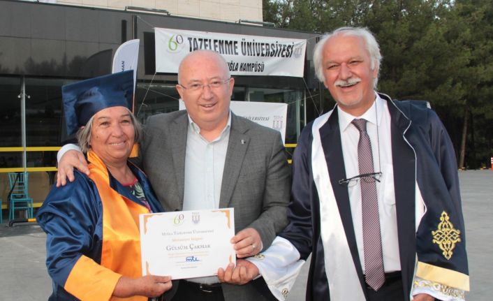 4 yıl boyunca teorik ve uygulamalı eğitimin verildiği Tazelenme Üniversitesi öğrencileri için düzenlenen diploma törenine katılan Menteşe Belediye Başkanı Bahattin Gümüş, kendisini okumayı öğreten İlkokul Öğretmeni Gülsüm Çakmak’ın diplomasını verdi.
