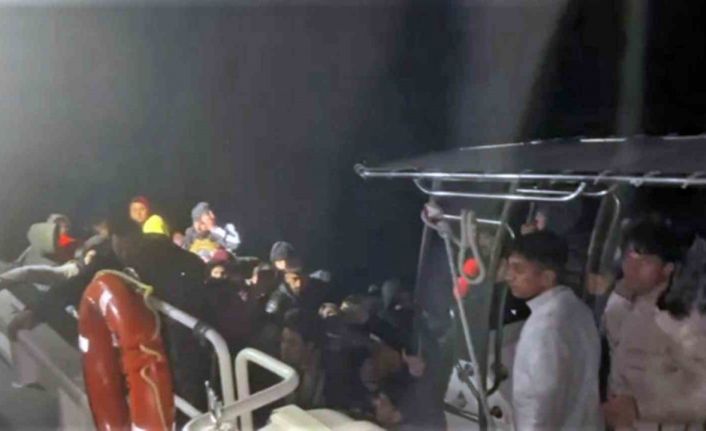 Muğla’nın Fethiye ilçesinde hareket halindeki lastik bot içinde 25’i çocuk 56 düzensiz göçmen ve 2 göçmen kaçakçılığı şüphelisi yakalandı.