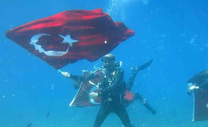 Anma gösterisi ve fotoğraf sergisinin ardından dalgıçlar, dev Türk bayrağı açarak dalgalandırdılar.