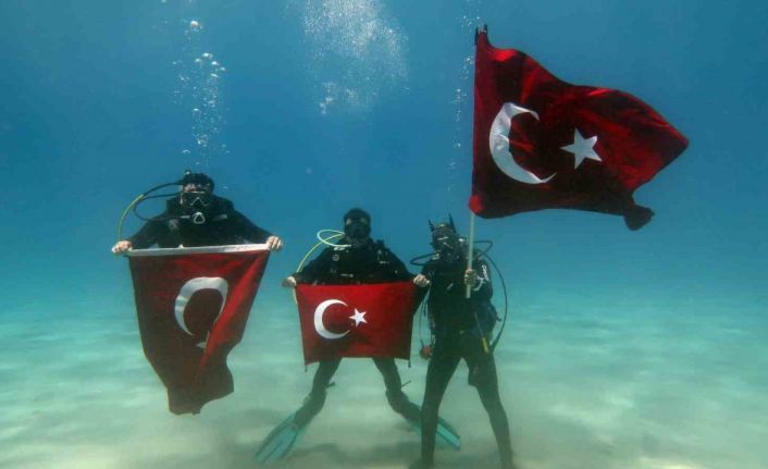 Muğla’nın Fethiye ilçesinde bir grup dalgıç, 19 Mayıs Atatürk’ü Anma Gençlik ve Spor Bayramı’nı deniz dibinde Türk bayrakları ile kutladı.
