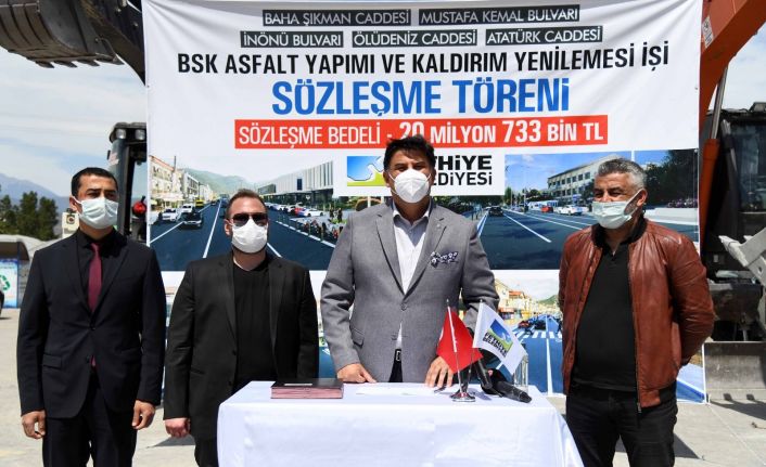 Proje kapsamında Baha Şıkman Caddesi, Mustafa Kemal Bulvarı, İnönü Bulvarı, Ölüdeniz Caddesi ve Atatürk Caddesi’ne Fethiye Belediyesi tarafından BSK sıcak asfalt yapılacak. Fethiye Belediye Başkanı Alim Karaca, “Tüm altyapıların bitmesi, elektrik tellerinin yeraltına alınması, sıcak asfaltları ve kaldırımlarıyla hayal ettiğimiz zaman güzel bir Fethiye bizleri bekliyor” dedi.