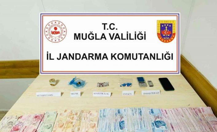 Edinilen bilgiye göre, Fethiye Jandarma Komutanlığı Kaçakçılık ve Organize Suçlarla Mücadele (KOM) ekipleri uyuşturucu ticareti yapıldığı bilgisine ulaştı. B.Y. ve K.A. isimli şahısların Yanıklar Mahallesinde bir otelde konakladıkları ve odada çok sayıda uyuşturucu madde olduğu bilgisini edinen ekipler harekete geçti. Jandarma ekiplerinin düzenlediği operasyonda 2 şüpheli gözaltına alındı. Narkotik köpeği Zorlu’nun da katıldığı aramada 35 Gram Metamfetamin, 12 Gr Skunk, 8 Adet Gerica marka sentetik hap, 33 adet Ekstacy türü uyuşturucu hap, 2 Adet Hassas terazi ,5 Adet uyuşturucu madde kullanma aparatı ve suçtan elde edildiği değerlendirilen 27 bin 755 TL nakit para ele geçirildi. K.A. alınan ifadesi ve biyolojik örneklerinin ardından serbest bırakıldı. Şüpheli B.Y.’nin ise işlemlerinin ardından mahkemeye sevk edildiği öğrenildi.