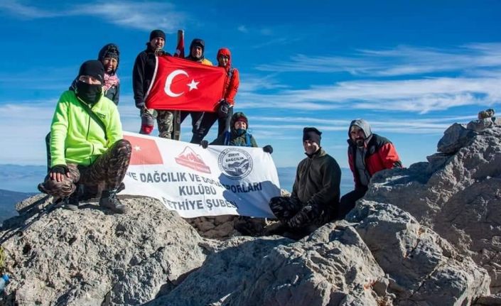 Muğla’nın Fethiye ilçesinde dağcılık ve doğa sporları kulübü üyesi 10 dağcı, Gazi Mustafa Kemal Atatürk’ün 83. ölüm yıl dönümü dolayısıyla Ata’ya saygı zirve tırmanışı gerçekleştirdi.