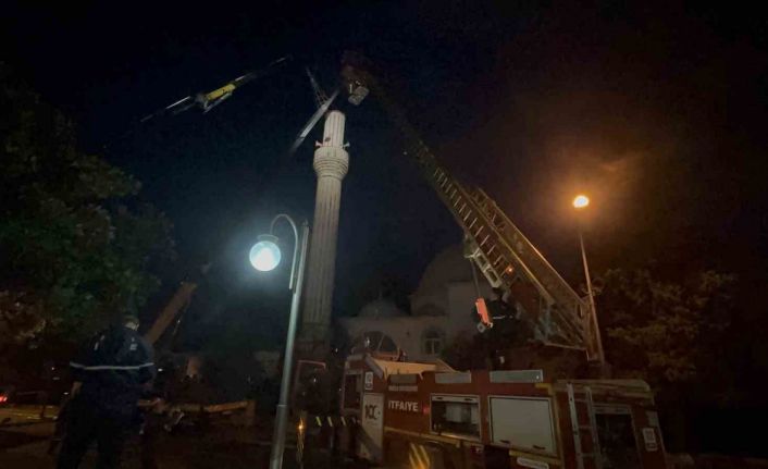 Fırtınada zarar gören minarede çalışma başlatıldı
