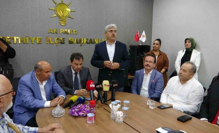 Törende konuşan AK Parti Fethiye İlçe Başkanı Turhan Kovancı, "Bir haftadır partimize çok ciddi bir üye kaydı var. Bugün daha güzelini ve coşkulusunu yaşıyoruz. Gelecek Partisi Fethiye İlçe Başkanımız Sadet Kansız ve beraberinde görev yapmış 15 kişi ile buradalar. Biz Sadet abinin milli ve manevi değerlere sadık olduğunu biliyoruz. Milli ve manevi değerlere sadık olunmasıyla AK Partiyi tercih etmişlerdir. Ben kendilerine ve arkadaşlarına bu tercihlerinden dolayı çok teşekkür ediyorum. Bu törenin hem Saadet abiye hem ekibine hem de partimize hayırlar getirmesini temenni ediyorum” diye konuştu.