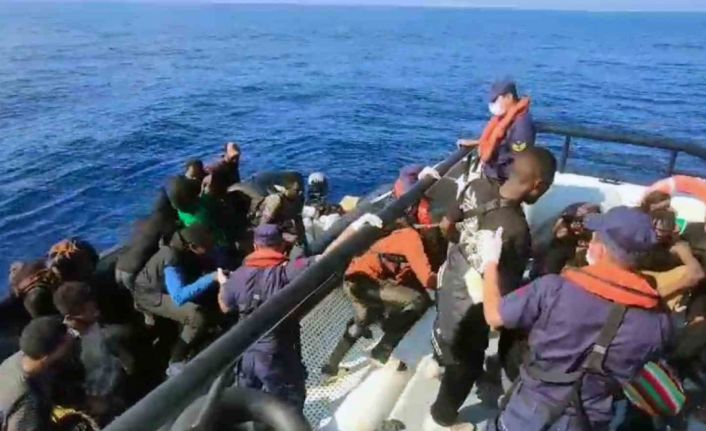 Lastik bot içindeki 40 düzensiz göçmen Sahil Güvenlik botuna alınarak kurtarıldı. Düzensiz göçmenler işlemlerinin adından Ula Geri Gönderme Merkezine teslim edildiler.