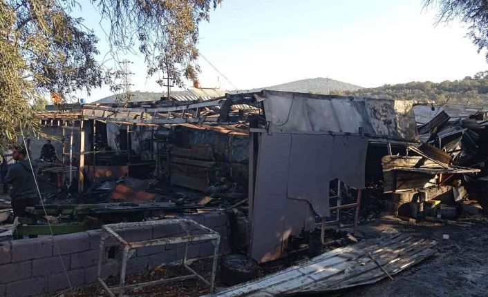 Muğla’nın Bodrum ilçesindeki çıkan yangında bir marangozhane tamamen yanarken yanındaki ferforje imalathanesinde büyük çapta maddi hasar oluştu.