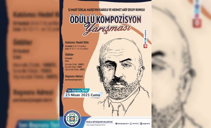 Muğla Büyükşehir Belediyesi, ‘12 Mart İstiklal Marşı’nın Kabulünün 100’üncü yılı ve Mehmet Akif Ersoy’u Anma’ etkinlikleri kapsamında kompozisyon yarışması düzenleyecek.