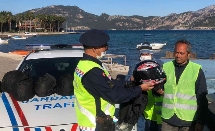 Muğla İl Jandarma Komutanlığı Trafik timleri tarafından “Kaskımla Güvendeyim” projesi kapsamında motosiklet sürücülerine kask dağıtımı yapıldı.