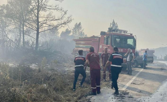 Muğla’nın Milas ilçesinde çıkan ve rüzgarın etkisiyle büyüyen orman yangınına havadan ve karadan müdahale edilirken, jandarma ekipleri de söndürme çalışmalarına destek oluyor.