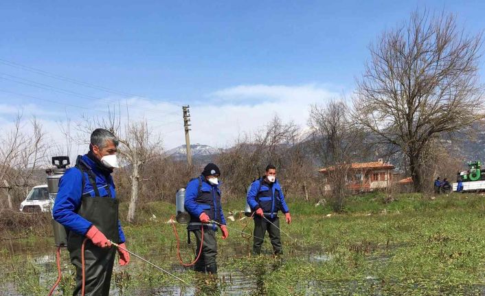 Muğla Büyükşehir Belediyesi, il genelinde alanında uzman ve “Biyosidal Ürün Uygulayıcı” sertifikasına sahip 206 personel, 54 araç ve donanımlı ekipmanlarıyla yılın 12 ayı boyunca vektörle mücadele çalışmaları devam ediyor. Bu kapsamda Menteşe ilçesi Karabağlar Yaylası’nda “Sivrisinek Tür Tayini” çalışmaları sonucu “Ochlerotatus Provocans” olduğu tespit edilen halk arasında “ot sineği” olarak bilinen sivrisinek türü üzerine, doğaya ve çevre sağlığına zarar vermeyen biyolojik (BTI) ilaçlar ile 500 hektarlık sulak alanda ilaçlama çalışma başladı.