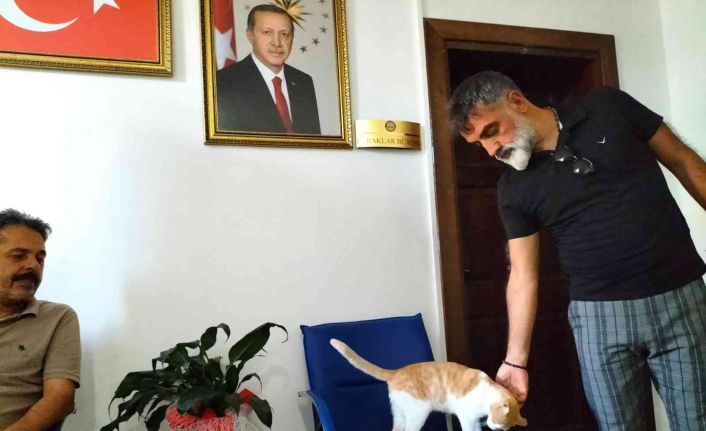 Muğla’nın Köyceğiz ilçesinde sokak kedisi ‘Sarı’ Kaymakamlık binasına yerleşti.