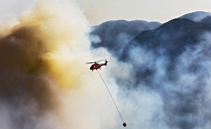 Muğla’nın Marmaris İlçesinde 29 Temmuz günü başlayan sonrasında da 8 ilçede etkili olan orman yangınlarında 66 bin 277 hektar alan kül oldu. 14 gündür devam eden yangınlara havadan ve karadan müdahaleler sürerken, Muğla Büyükşehir Belediyesi’nin girişimleri sonucu WWF-Türkiye Doğal Hayat Koruma Vakfı tarafından kiralanan helikopter, yangın noktalarında başarılı müdahalelerde bulundu.