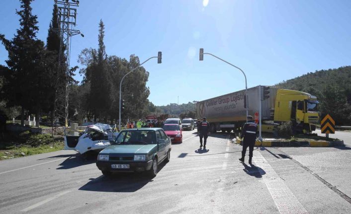 Bodrum-Milas karayolunda kırmızı ışıkta duramayan tır, 5 araca çarptı, kazada 1’i ağır 7 kişi yaralandı.