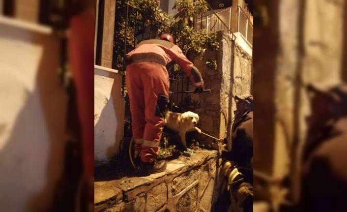 Muğla’nın Bodrum ilçesinde, demir korkulukların arasına sıkışan köpek için itfaiye ekipleri seferber oldu.