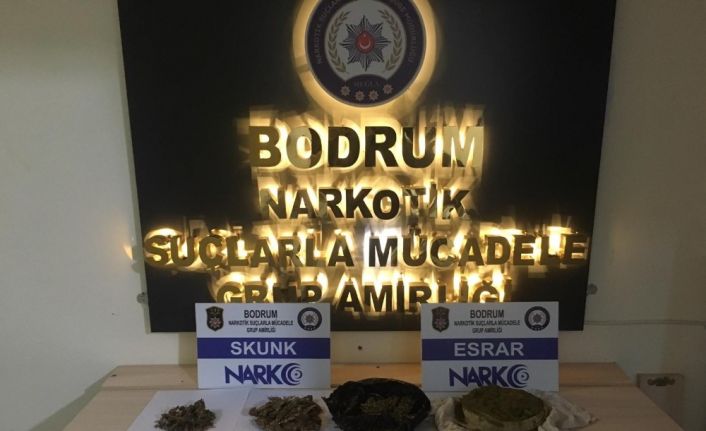 Bodrum Cumhuriyet Başsavcılığı koordinesinde alınan arama kararına istinaden şahısların üzerinde, araçlarında ve H.E. isimli şahsın ikametinde yapılan aramada; 300 gram toz esrar ile 4 parça halinde daralı 861 gram esrar maddeleri yakalandı. Uyuşturucu maddelere el konulurken, zanlılar elde edilen suç unsurları ile adliyeye sevk edilecek.
