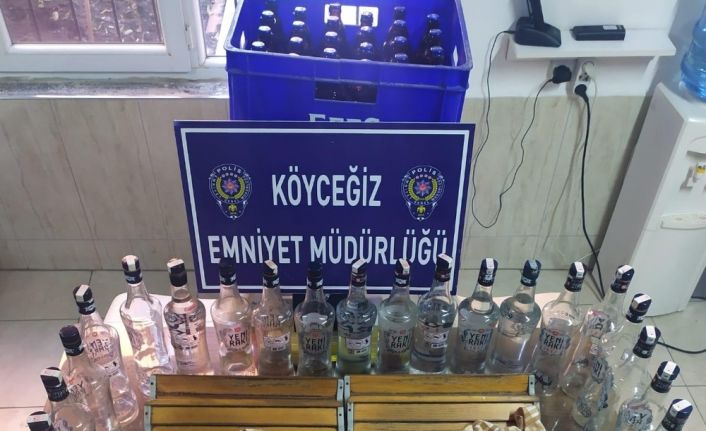 Kahvehanede yapılan aramada, oyun taşları, yaz boz kağıtları ile şişelenmiş halde 9 litre el yapımı rakı, 48 şişe bira ele geçirildi.