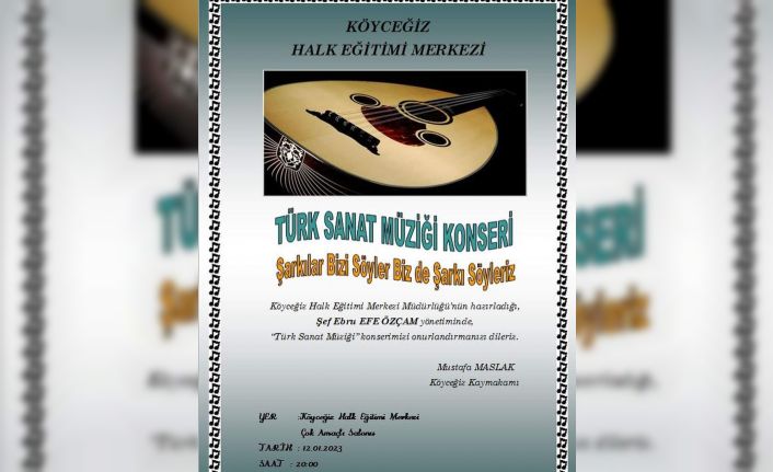 Muğla’nın Köyceğiz ilçesinde ‘Şarkılar Bizi Söyler Biz de Şarkı Söyleriz’ adıyla Türk Sanat Müziği Konseri düzenlenecek.