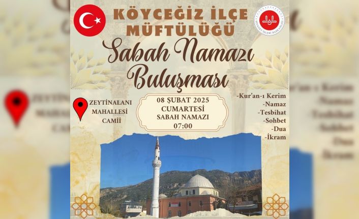 Muğla’nın Köyceğiz ilçesinde bu hafta Sabah Namazı buluşması Zeytinalanı Mahallesi Merkez Camii’nde gerçekleşecek.