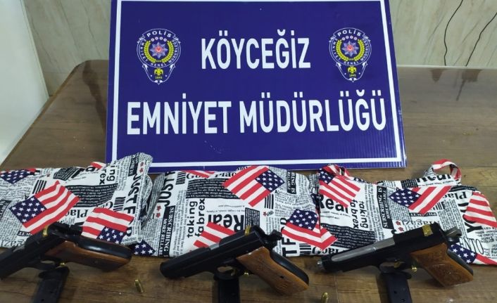 Muğla’nın Köyceğiz ilçesinde yasa dışı silah satışı yaptığı bilgisine ulaşan polis, alıcı gibi davranarak şüphelilerle buluşma ayarladı. Buluşma noktasına gelen 2 şüpheli gözaltına alınırken, 3 ruhsatsız tabanca ile mermi ele geçirildi.