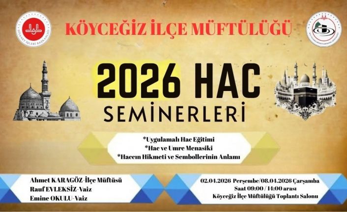 Köyceğiz İlçe Müftülüğü’nün sosyal medya hesabında yaptığı açıklamada; "Ömürlerinde bir defa yaşayacakları hac yolculuğuna hazırlamak, gerekli eğitim ve rehberliği sunmak, bu yolculuğu hayatlarında manevi bir milat haline dönüştürmek ve hac organizasyonlarında karşılaşılan problemleri en aza indirmek amacıyla 2026 yılı Diyanet İşleri Başkanlığı ve Seyahat Acenteleri organizasyonu ile Köyceğiz İlçemizden Hacca gitmek üzere kesin kayıt hakkı elde eden Hacı adaylarımız için Köyceğiz İlçe Müftülüğü toplantı salonunda 02 Nisan 2026 Perşembe günü ile 08 Nisan 2026 Çarşamba günleri 09:00-14.00 saatleri arasında Hac Eğitim Semineri düzenlenecektir. Allah bu sene hac yolculuğuna çıkacak olan kardeşlerimize kolaylıklar ihsan eylesin. Daha önce gidenlere umre gidemeyen kardeşlerimize de en kısa zamanda hac farizasını ifa etmeyi nasip eylesin" ifadelerine yer verildi.