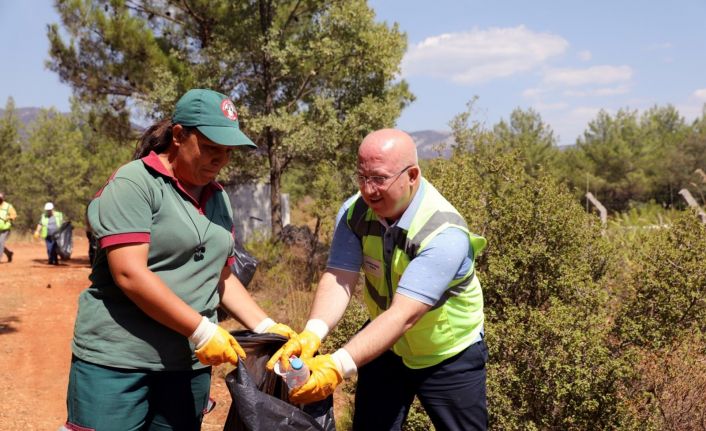 Menteşe Belediye personeli, sivil toplum örgütleri, Kozağaç mahallesi sakinleri ve gönüllülerin de katılımıyla düzenlenen temizlik etkinliğinde Menteşe Belediye Başkanı Bahattin Gümüş’de katılımcılar ile birlikte çevre temizliği yaparak çöp topladı.