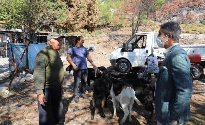 Marmaris Belediyesi, yangının yaralarını sarmaya devam ediyor. Marmaris yangınında küçükbaş hayvanları telef olan kırsal mahallelerde yaşayan vatandaşlara 257 adet keçi teslim edildi.