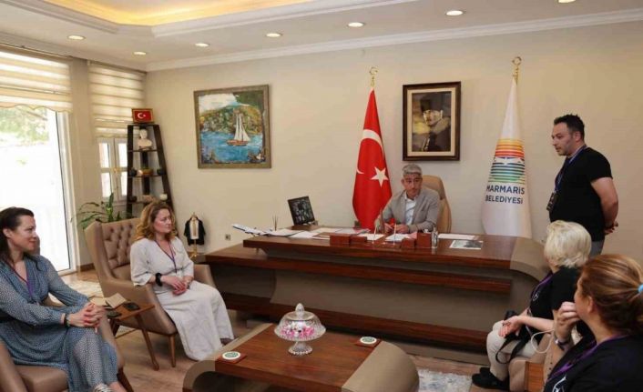 19 Mayıs Atatürk’ü Anma, Gençlik ve Spor Bayramı kutlamaları çerçevesinde düzenlenen 18. Uluslararası Marmaris Halk Dansları Festivali için Marmaris’e gelen Galart ekibi ve dansçı konuklar Belediye Başkanı Mehmet Oktay’ı ziyaret etti.