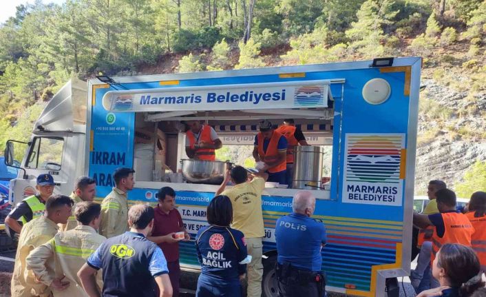 Yangının duyulmasıyla birlikte Marmaris Belediye Başkanı Mehmet Oktay; başkan yardımcıları, birim amirleri ve söndürme ekiplerine lojistik destek veren ekiplerle birlikte yangın bölgesinde yer aldı. Marmaris Belediyesi Arama Kurtarma (MABKE), zabıta, temizlik, destek, fen işleri, park bahçeler ve sosyal işler ekipleri de ilk andan itibaren itfaiye ve orman çalışanlarına destek oldu. İkram aracı ile ekiplere su ve yiyecek ikramı yapılırken, araca gelemeyen söndürme ekiplerine de zabıta ekipleri tarafından dağıtım yapıldı. Yangınla mücadelede Marmaris Belediyesi 139 personel, 36 araç ve 1 ikram aracıyla söndürme ekiplerine destek olmak için sahada oldu. Söndürme ekiplerine lojistik desteğin yanı sıra tüm ekiplere gıda, sıcak yemek ve içecek ikramı da çalışma boyunca sürdürüldü.