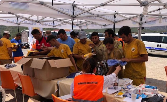 Marmaris Belediyesi ayrıca söndürme ekiplerine daha kolay lojistik destek sağlamak için yangın bölgesi olan Değirmenyanı’na bir de kriz merkezi kurdu. Yangının ilk anında ikram aracının konuşlandırıldığı, sürenin uzamasıyla lojistik destek merkezine dönüşen alanda orman işçileri, itfaiye, jandarma, polisi, arama kurtarma ekipleri, gönüllüler, diğer illerden gelen söndürme ekipleri, gazeteciler ve vatandaşların yiyecek, su, ayakkabı, giysi, iç çamaşırı, ilaç, maske gibi eksiklerini anında karşılanıyor. Gün boyunca huzurevi mutfağında pişirilen çorba ve makarna ikramının yapılırken ayrıca zabıta ekipleri yangın bölgesini gezerek de çalışmaları sürdüren ekiplere malzeme dağıtımında bulunuyor. Yangının başladığı ilk andan itibaren yaklaşık 10 bin kase çorba, 4 bin kişilik makarna, 7 bin adat sandviç ikramında bulunuldu. Belediye ekipleri jenaratör, mazot, şarj gibi ekipmanları burada konuşlandırdı.