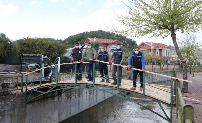 Destek Hizmetleri Müdürlüğü’ne bağlı demir ve ahşap ustalarının hünerli ellerinden çıkan kent mobilyaları, çöp sepetleri, köprüler, korkuluklar ihtiyaç duyulan her yerde kent yaşayanlarına hizmet veriyor. Ekipler geçtiğimiz hafta Maksim Deresi’nin Molakent arkasında kalan bölümüne köprü yaparken, Siteler Pazarı’nda da tezgahları yeniledi.