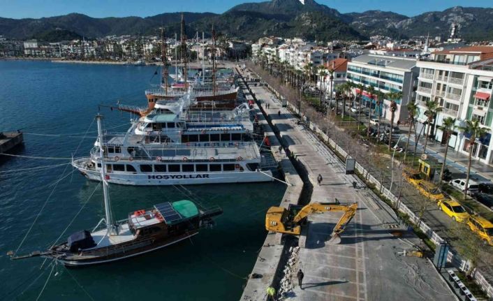Marmaris Yat Limanı Yenileme projesinde altyapı çalışmalarının tamamlanmasıyla birlikte çalışmalarında 12 bin metrekare zemin kaplaması yapılacak.