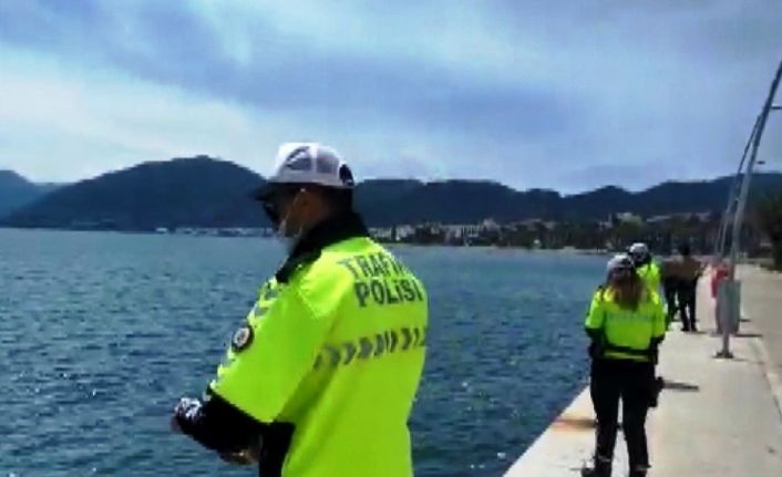 Muğla’nın Marmaris ilçesinde, dört günlük sokağa çıkma kısıtlamasında emniyet güçleri bu sefer denizdeki balıkları besledi.