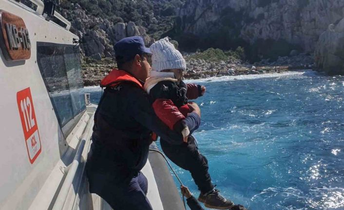 Muğla’nın Marmaris ilçesi Taşlıca mahallesinde karadan ulaşımın bulunmadığı bölgede 3’ü çocuk 13 düzensiz göçmen kurtarıldı.
