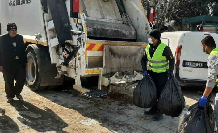 Marmaris Belediyesi Temizlik İşleri Müdürlüğü’nden 5 kişilik ekip Gaziantep’te temizlik çalışmalarına devam ediyor. Nurdağı’nda özellikle çadırların kurulduğu alanları ve halkın yoğun olarak bulunduğu yerlerde temizlik çalışması gerçekleştiren ekipler sokakları süpürerek dolan konteynerleri yine Marmaris’ten giden çöp kamyonuna aktarıyor.