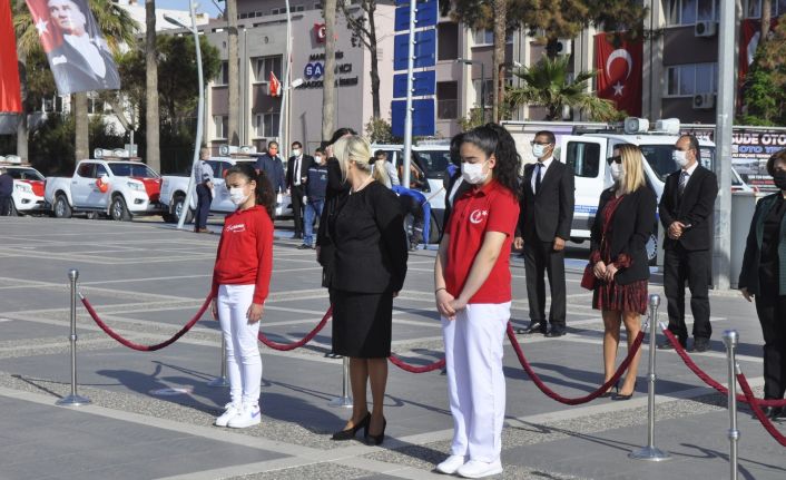 Tören Marmaris Atatürk Meydanında sabah saat 09.00 da gerçekleşti. İlçe Milli Eğitim Müdürü ve iki ilköğretim öğrencisi Atatürk anıtına çelenk sundu. İlçe Milli Eğitim Müdürü Züleyha Aldoğan, yöneticilerin ve ilçe ilköğretim okul müdürlerinin katıldığı törende çelenk sunma merasiminden sonra Gazi Mustafa Kemal Atatürk ve tüm şehitler için bir dakikalık saygı duruşu ardından İstiklal Marşı okundu. 23 Nisan Ulusal Egemenlik ve Çocuk Bayramının 101. yılı olması sebebi ile kırmızı ve beyaz balonlardan oluşan 101 adet balon tören bitiminde Atatürk anıtının önünden gökyüzüne bırakıldı. Kutlamaların devamında Marmaris İlçe Emniyet Müdürlüğü, İlçe Jandarma Komutanlığı ve Marmaris Belediyesine ait resmi araçlar gün içinde ilçede çocuk marşları eşliğinde konvoy yapacak. Akşam 21.00 de yine ilçe merkezi ve mahallerindeki tüm okullarda İstiklal Marşı megafondan verilerek, hep beraber okunacak.Marmaris’te 23 Nisan çelenk sunma töreni gerçekleşti