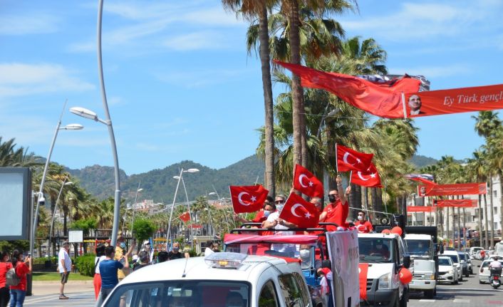 Muğla’nın Marmaris ilçesinde Marmaris Belediyesi, 19 Mayıs Atatürk’ü Anma Gençlik ve Spor Bayramı’nın 102’nci yılı dolayısıyla özel olarak süslenen araçlarla ilçeyi dolaştı, yayınlanan marşlarla bayram coşkusu yaşattı.