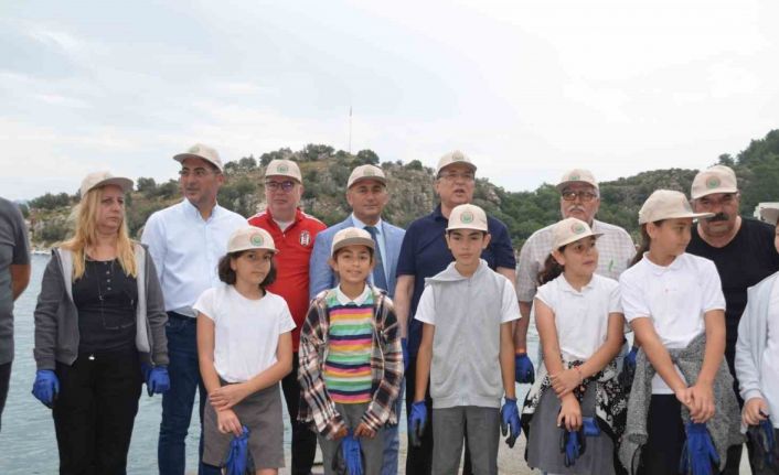 Muğla’nın Marmaris ilçesinde belediye başkanları ve öğrenciler temizlik için kolları sıvayıp, liman bölgesinde atık topladı.