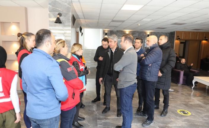 Kaymakam Aksoy ve başkanların hem çalışmaları takip ettiği hem de depremzedeler ile sohbet ettiği koordinasyon merkezinde kendi aralarında yapılacak görevler ile ilgili istişare toplantısı yaptılar.