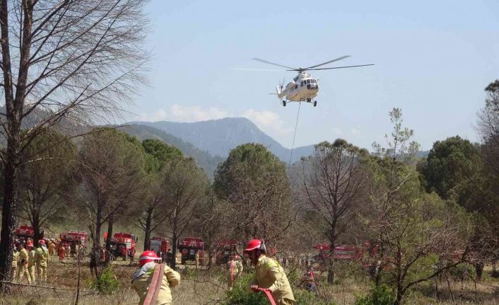 Geçtiğimiz yaz çıkan orman yangınlarında 9 bin 52 hektar ormanlık alan yanan Marmaris’te orman ekipleri ve gönüllü vatandaşlardan oluşan saha ekipleri gerçeği aratmayacak bir tatbikat yaptı. Marmaris Orman İşletme Müdürlüğü ve Datça Orman İşletme Müdürlüğü ekipleri ile her yaz sezonu başında orman yangınlarında zamanında ve doğru müdahaleyi yapmak amacı ile yapılan yangın tatbikatı ve eğitimine 11 Arazöz, 4 su tankeri, 5 ilk müdahele aracı, 1 helikopter ,150 personel ve 70 eğitim almış Marmaris ve Datça’dan gelen orman yangın gönüllüsü katıldı. Muğla Orman Bölge Müdürü Yasin Yaprak ile birlikte Marmaris Orman İşletme Müdürü Akın Ünler ve Datça Orman şefleri tatbikat ve eğitim alanında hazır bulundular.