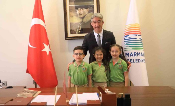 Marmaris Belediye Başkanı Mehmet Oktay 23 Nisan Ulusal Egemenlik ve Çocuk Bayramı dolayısıyla koltuğunu 1. sınıf öğrencileri Sare İmir, Meriç Ada Karataşoğlu ve Rüzgar Genç’e devretti.