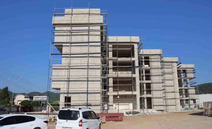 Marmaris’te tüm birimlerin tek çatı altında hizmet vereceği belediye hizmet binasının yapımı hızla devam ediyor. Datça Yolu üzerinde mülkiyeti Marmaris Belediyesi’ne ait olan arsada yapımına başlanan binanın inşası 8 aylık sürede yüzde 60 seviyeye ulaştı. Marmaris Belediye Başkanı Mehmet Oktay’ın ‘prestij projeleri’ arasında yer alan ve Marmaris’i modern bir belediye binasına kavuşturacak olan çalışmada dış cephe tamamlandı. 1065 metrekare oturumlu yapının temel sistemi radye temel, taşıyıcı sistemi betonarme çerçeve ve perde duvarlı sistem, döşeme tipi ise deprem yüklerine karşı en iyi performansı gösteren plak döşeme olarak projelendirildi. Halk arasında kaba inşaat olarak tabir edilen kısım 2 ay önce tamamlandı.