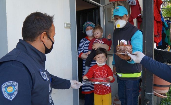 Marmaris Belediyesi Zabıta Müdürlüğü ekipleri, Temizlik İşleri Müdürlüğü görevlisi İbrahim Sezer’in oğlu 6 yaşındaki Kerem’e doğum günü sürprizi yaptı.